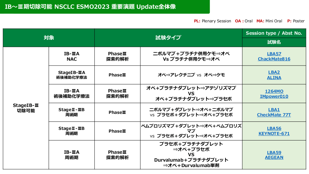 ・IB~Ⅲ期切除可能 NSCLC ESMO2023 重要演題 Update全体像