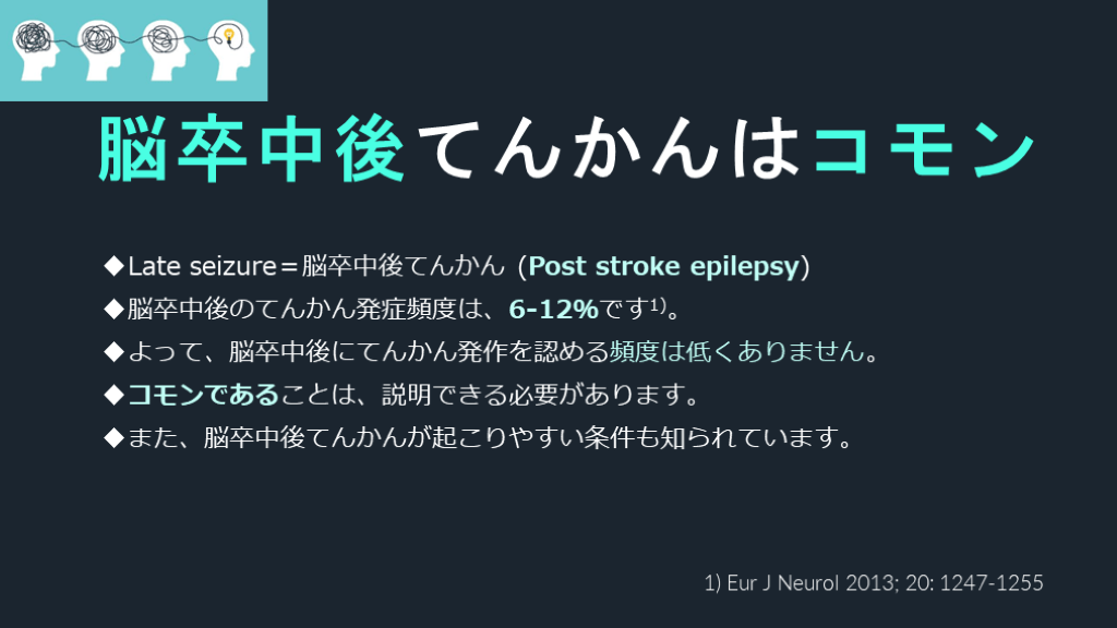 #37. てんかん、の診療においては最もコモンな話題が、脳卒中後てんかんです。
