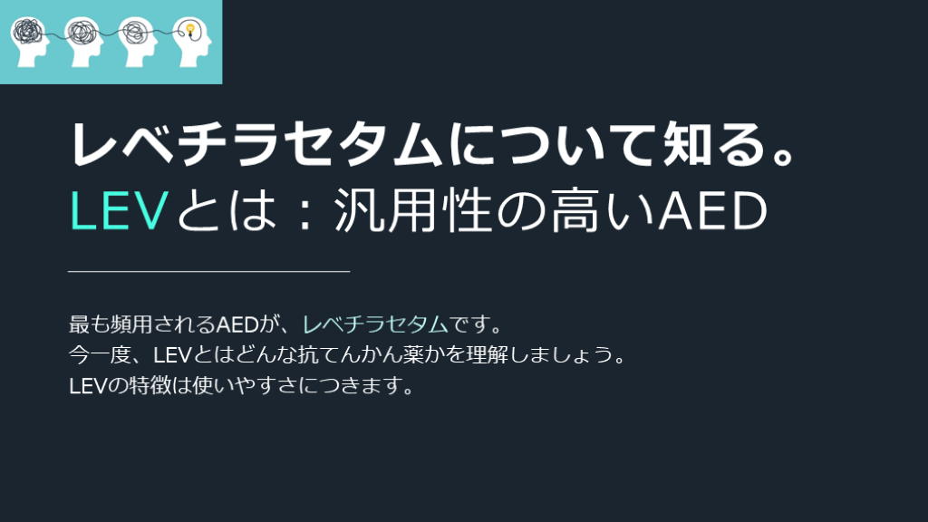 LEVとは:汎用性の高いAED 最も頻用されるAEDが、レベチラセタムです。