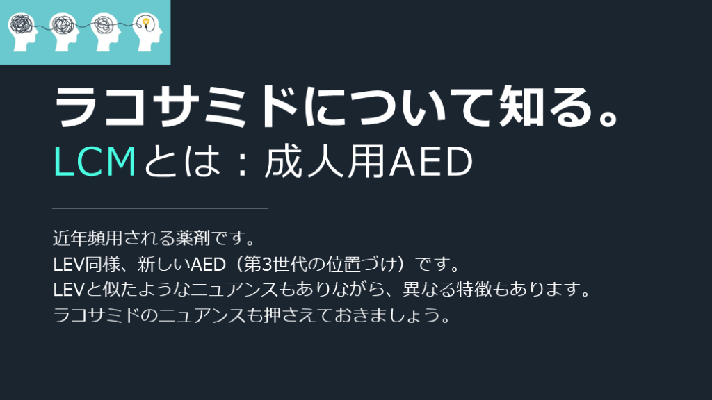 LCMとは:成人用AED 近年頻用される薬剤です。