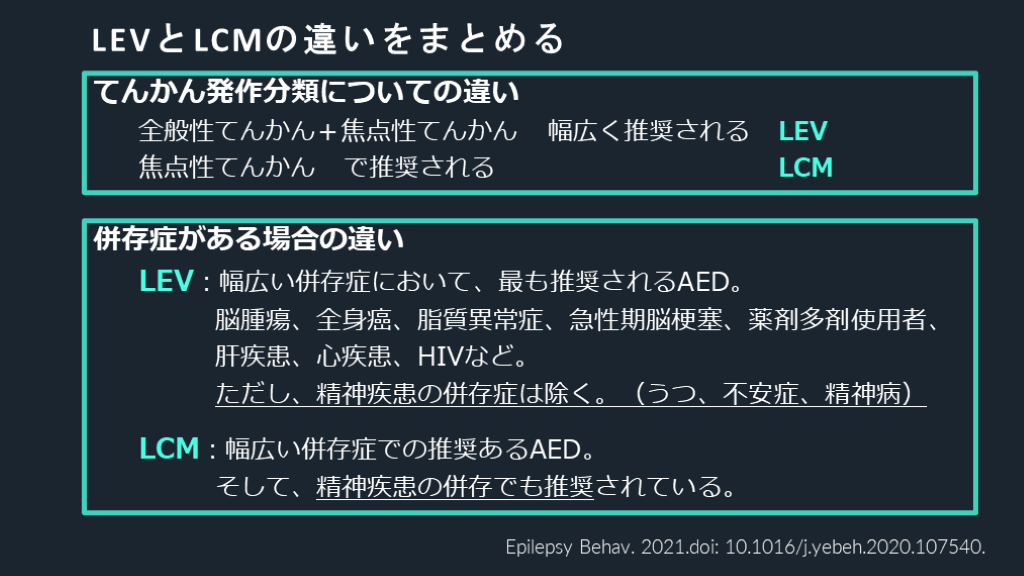 そして、精神疾患の併存でも推奨されている。 Epilepsy Behav. 2021.doi: 10.1016/j.yebeh.2020.107540.