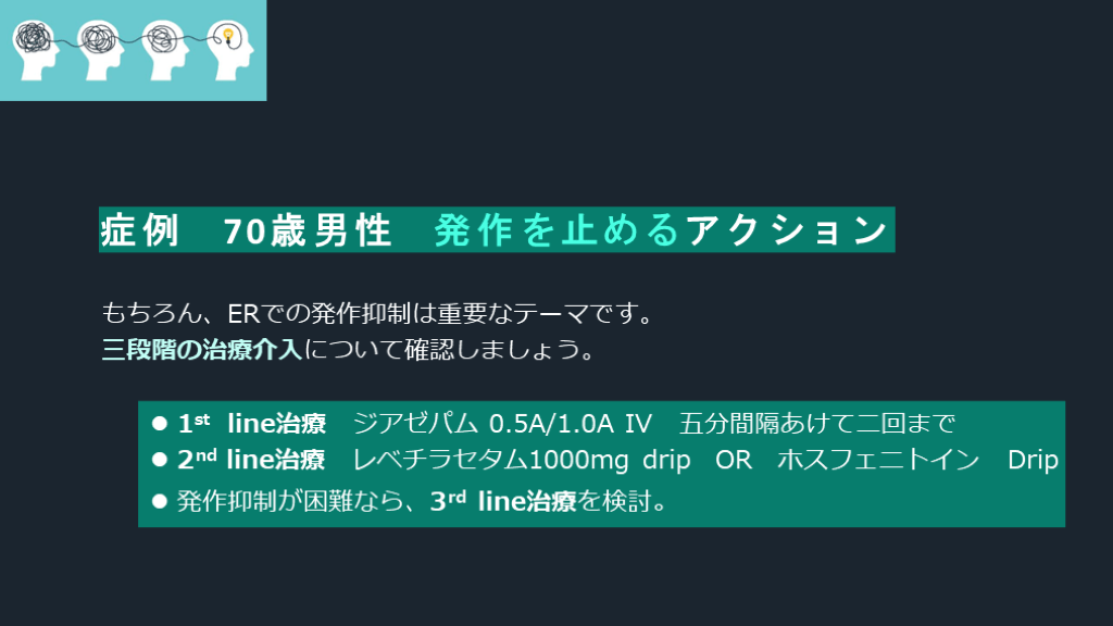 #34. 症例 70歳男性 発作を止めるアクション もちろん、ERでの発作抑制は重要なテーマです。