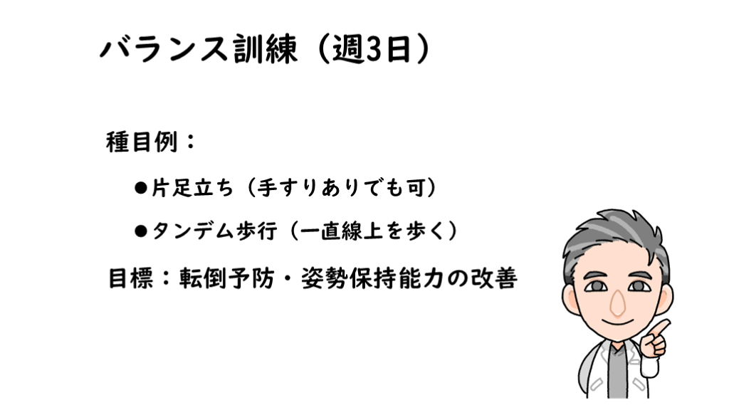 #13. バランス訓練(週3日) 種目例: