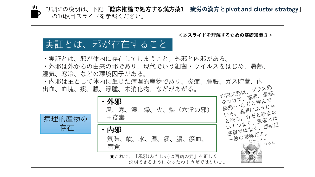 #10. “風邪”の説明は、下記「臨床推論で処方する漢方薬1 の10枚目スライドを参照ください。 疲労の漢方とpivot and cluster strategy」