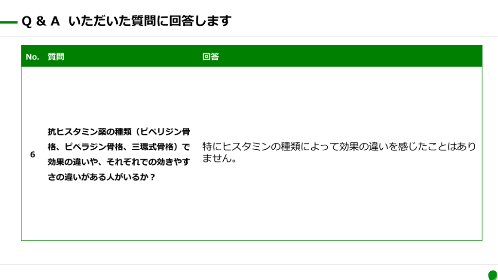 #5. 18件のRCTが対象となり、うち17件がメタ解析 に評価された。 漢方薬は抗ヒスタミン薬(ロラタジンおよびク ロルフェニラミン)と比較し、鼻症状スコア合 計、鼻汁、鼻閉、くしゃみ、鼻のかゆみ、SF-36 に関する一部のサブグループ解析では有意差は 認められなかった。