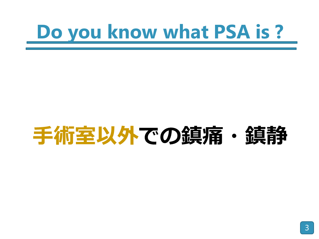 様々な処置の際に患者への負担軽減のためには必須なPSA(Procedural Sedation Analgesia)についてまとめ。
