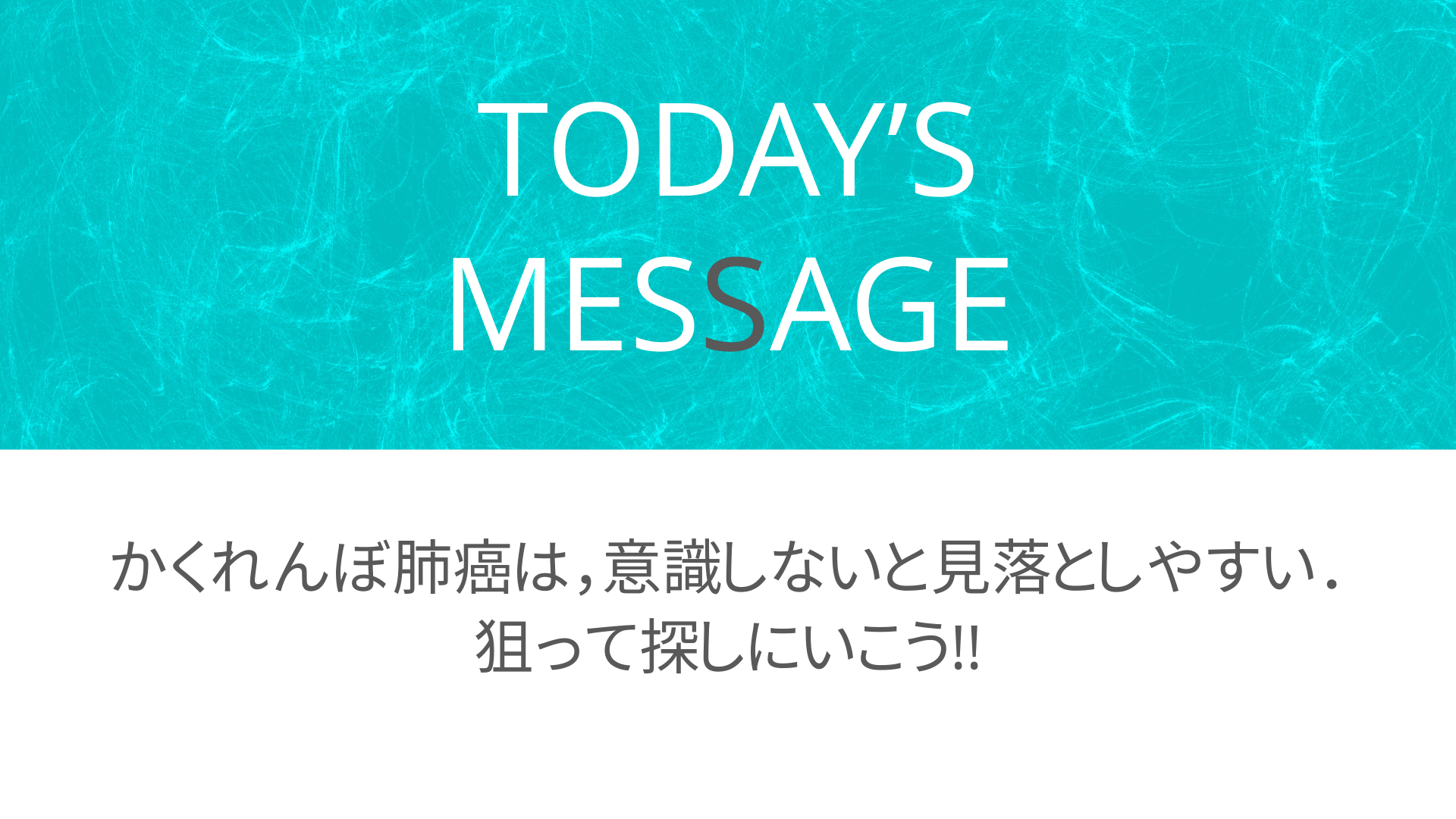 #39. TODAY’S MESSAGE かくれんぼ肺癌は,意識しないと見落としやすい. 狙って探しにいこう!!