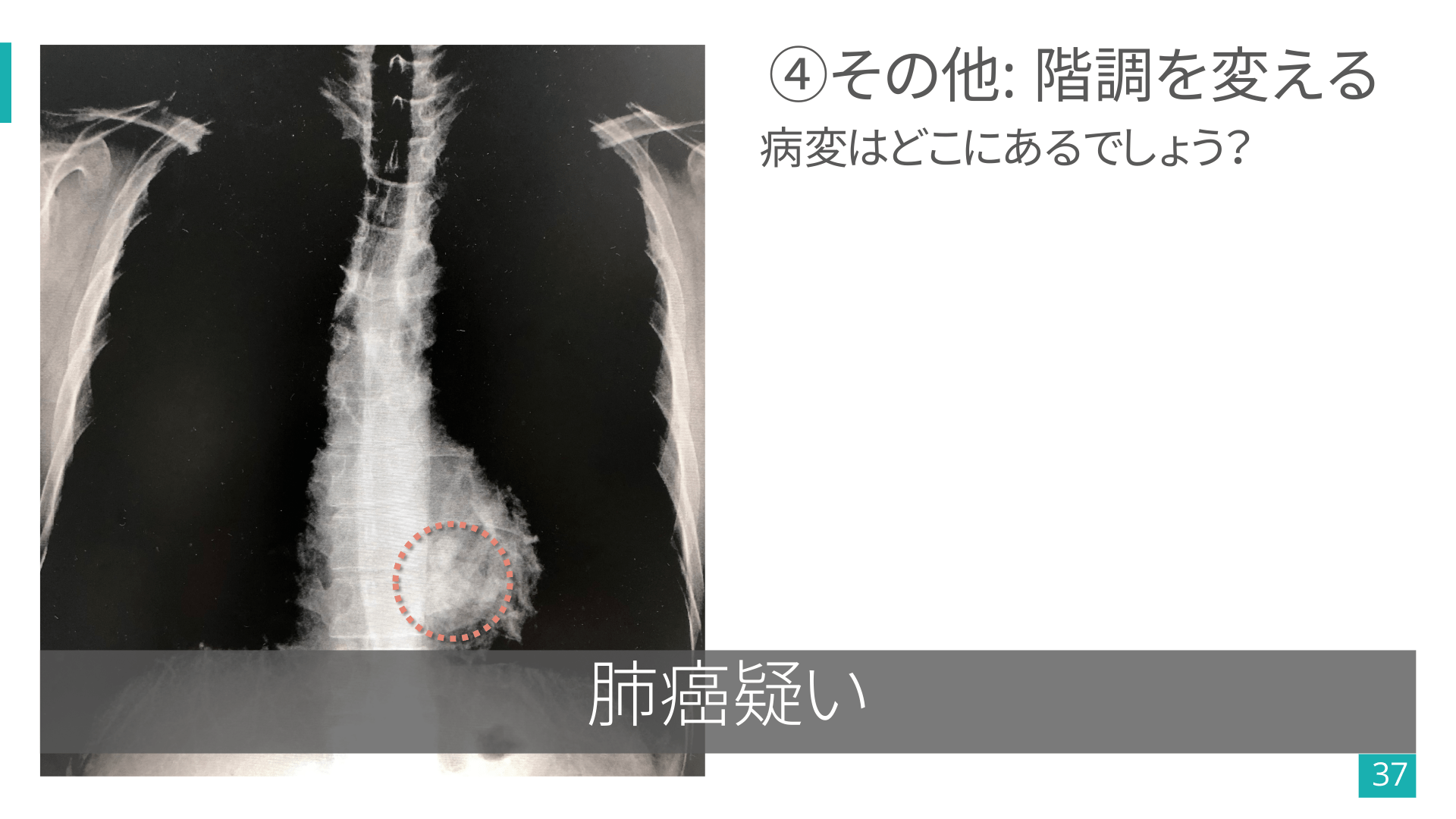 #37. ④その他: 階調を変える 病変はどこにあるでしょう? 肺癌疑い 37