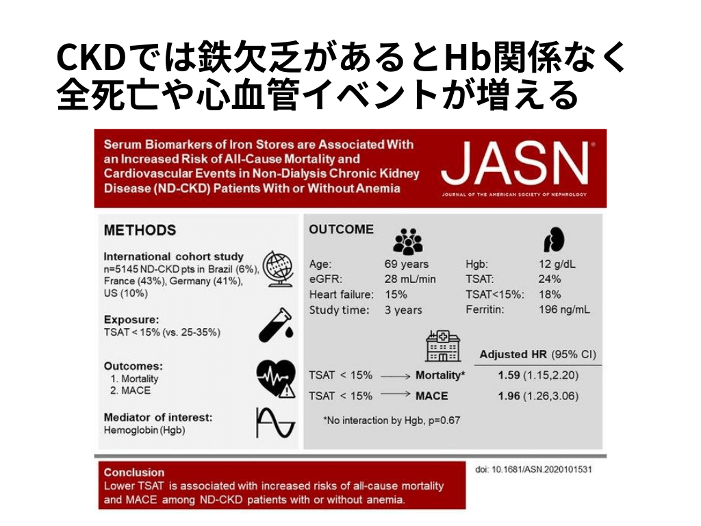 #17. CKDでは鉄欠乏があるとHb関係なく 全死亡や心血管イベントが増える