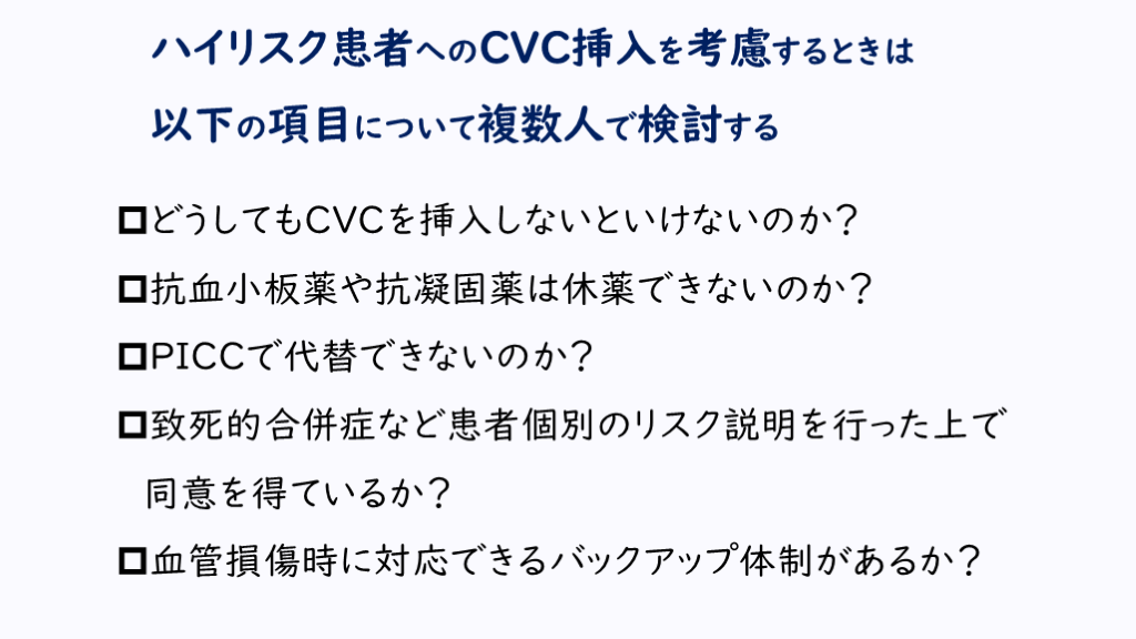 #5. ハイリスク患者へのCVC挿入を考慮するときは