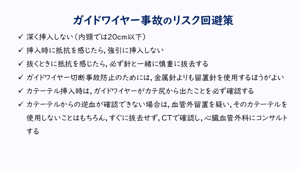 ガイドワイヤー切断事故防止のためには,金属針よりも留置針を使用するほうがよい