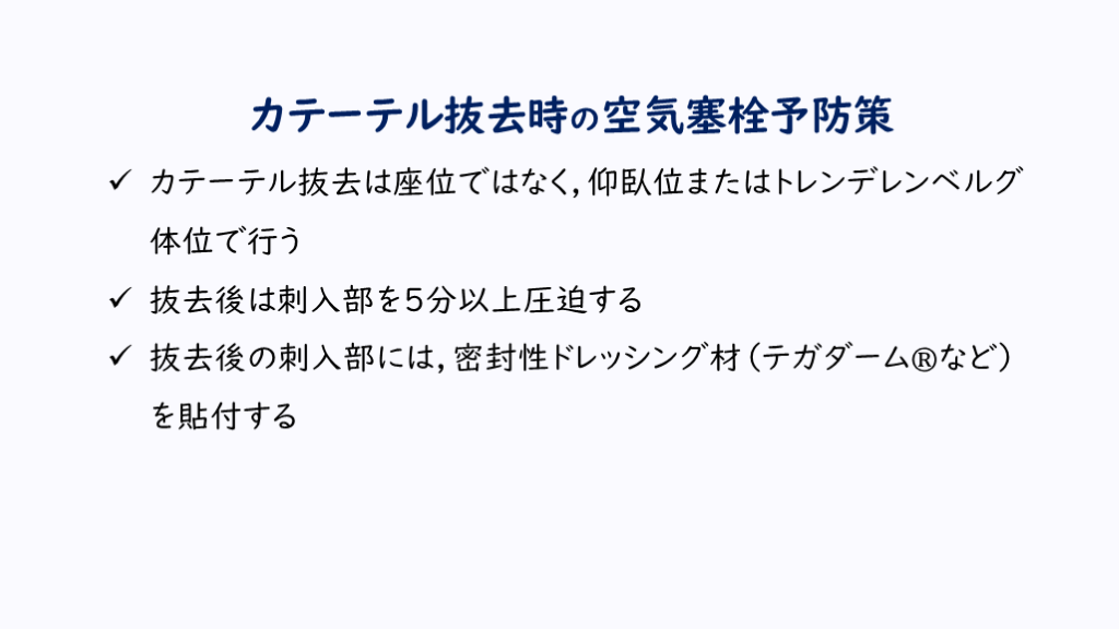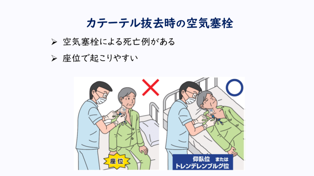 カテーテル抜去時の空気塞栓のリスクと予防策