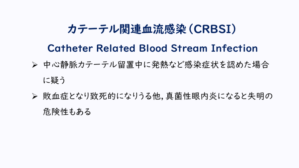 中心静脈カテーテル留置中に発熱など感染症状を認めた場合に疑う