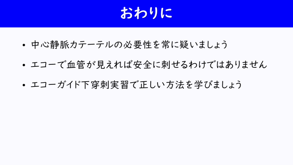 #22. おわりに 中心静脈カテーテルの必要性を常に疑いましょう