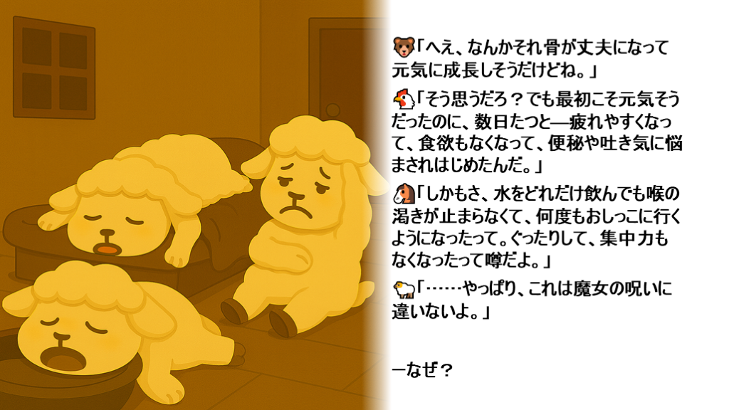 🐰「つまり、骨を丈夫にしようと思った善意のごちそうが、逆に体を壊すことになってるってことですね。」