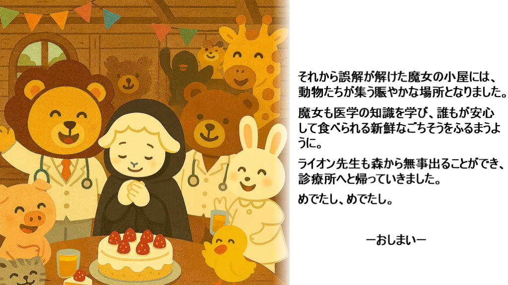 ライオン先生も森から無事出ることができ、診療所へと帰っていきました。