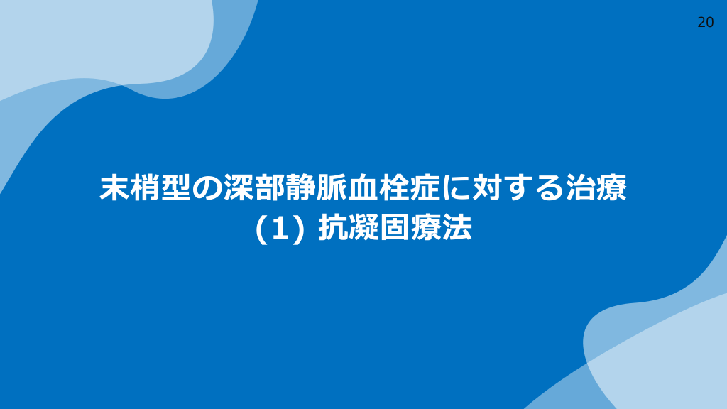 #20. 20 末梢型の深部静脈血栓症に対する治療 (1) 抗凝固療法