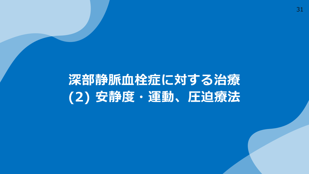 #31. 31 深部静脈血栓症に対する治療 (2) 安静度・運動、圧迫療法