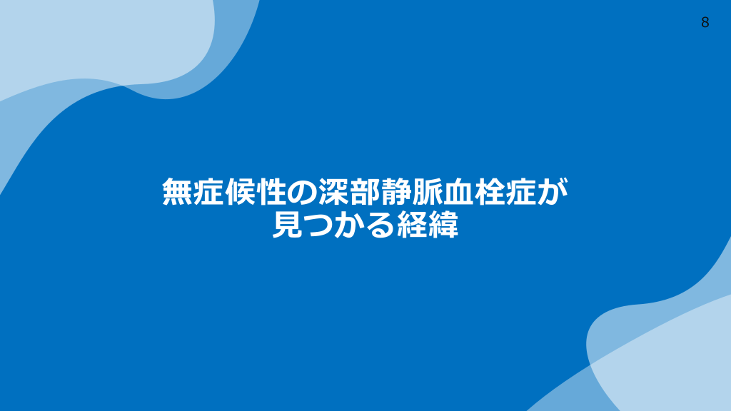 #8. 8 無症候性の深部静脈血栓症が 見つかる経緯