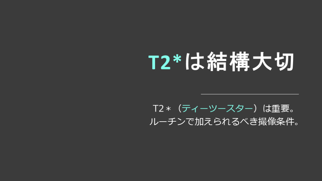 #26. T2*は結構大切 T2*(ティーツースター)は重要。