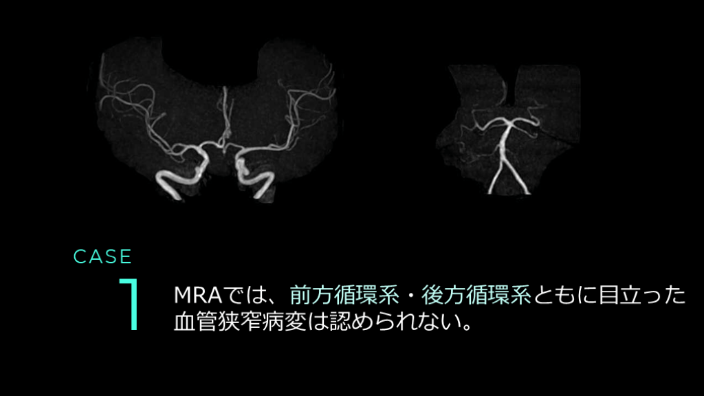 #40. 1 CASE MRAでは、前方循環系・後方循環系ともに目立った血管狭窄病変は認められない。