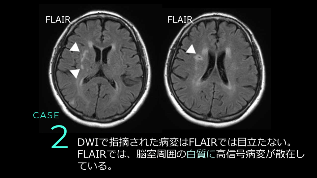 #44. CASE 2 DWIで指摘された病変はFLAIRでは目立たない。