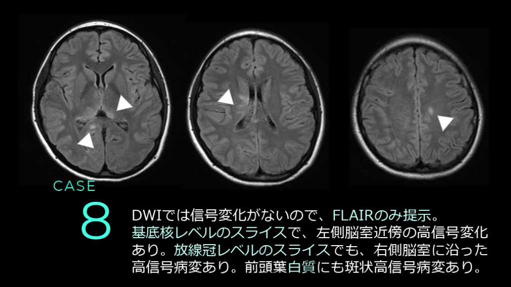 #68. 8 CASE DWIでは信号変化がないので、FLAIRのみ提示。