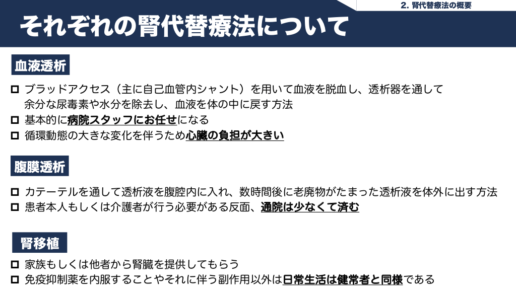 腎代替療法の種類と特徴