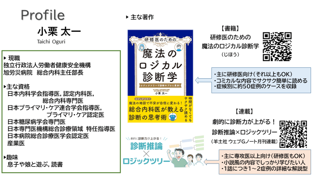 #1. 【研修医・内科&総合診療科若手医師必見!】 旭労災病院総合内科 小栗太一 診断推論の「苦手」が「得意」に変わる!ロジックツリー診断推論