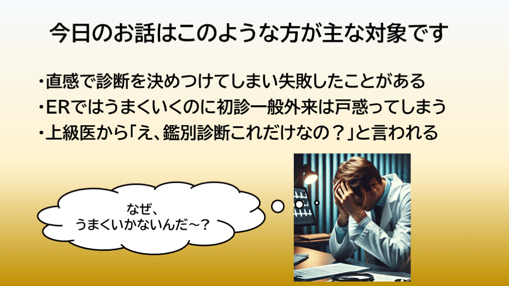 ・上級医から「え、鑑別診断これだけなの?」と言われる なぜ、