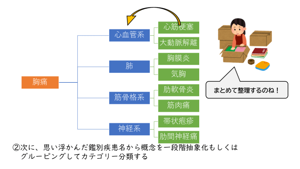 #13. ②次に、思い浮かんだ鑑別疾患名から概念を一段階抽象化もしくは
