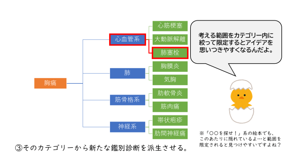 #14. ③そのカテゴリーから新たな鑑別診断を派生させる。 考える範囲をカテゴリー内に絞って限定するとアイデアを