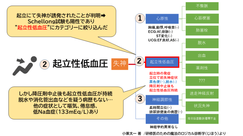 小栗太一 著 /研修医のための魔法のロジカル診断学(じほう)より 1 2 3 起立にて失神が誘発されたことが判明➡