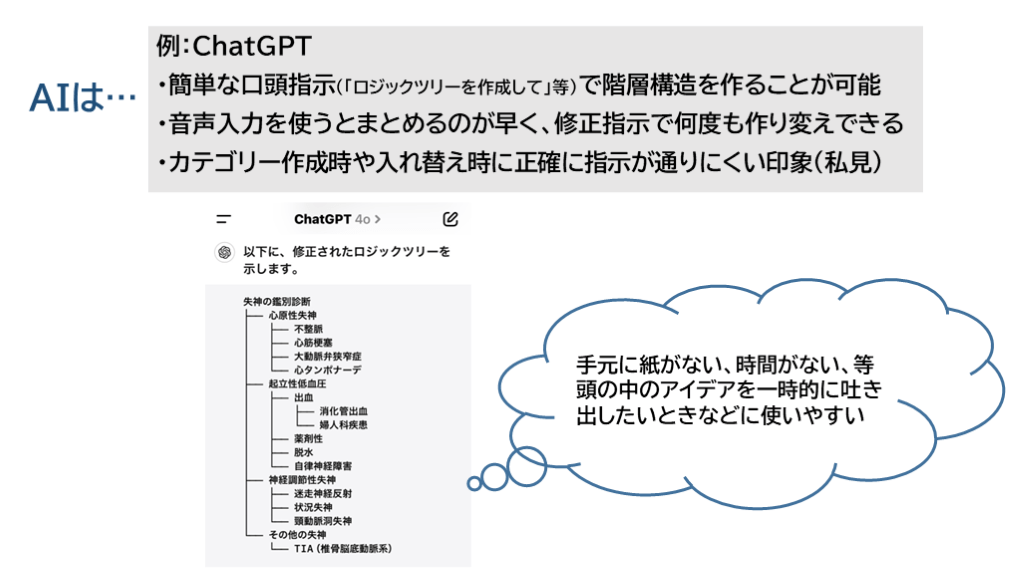 ・音声入力を使うとまとめるのが早く 、修正指示で何度も作り変えできる