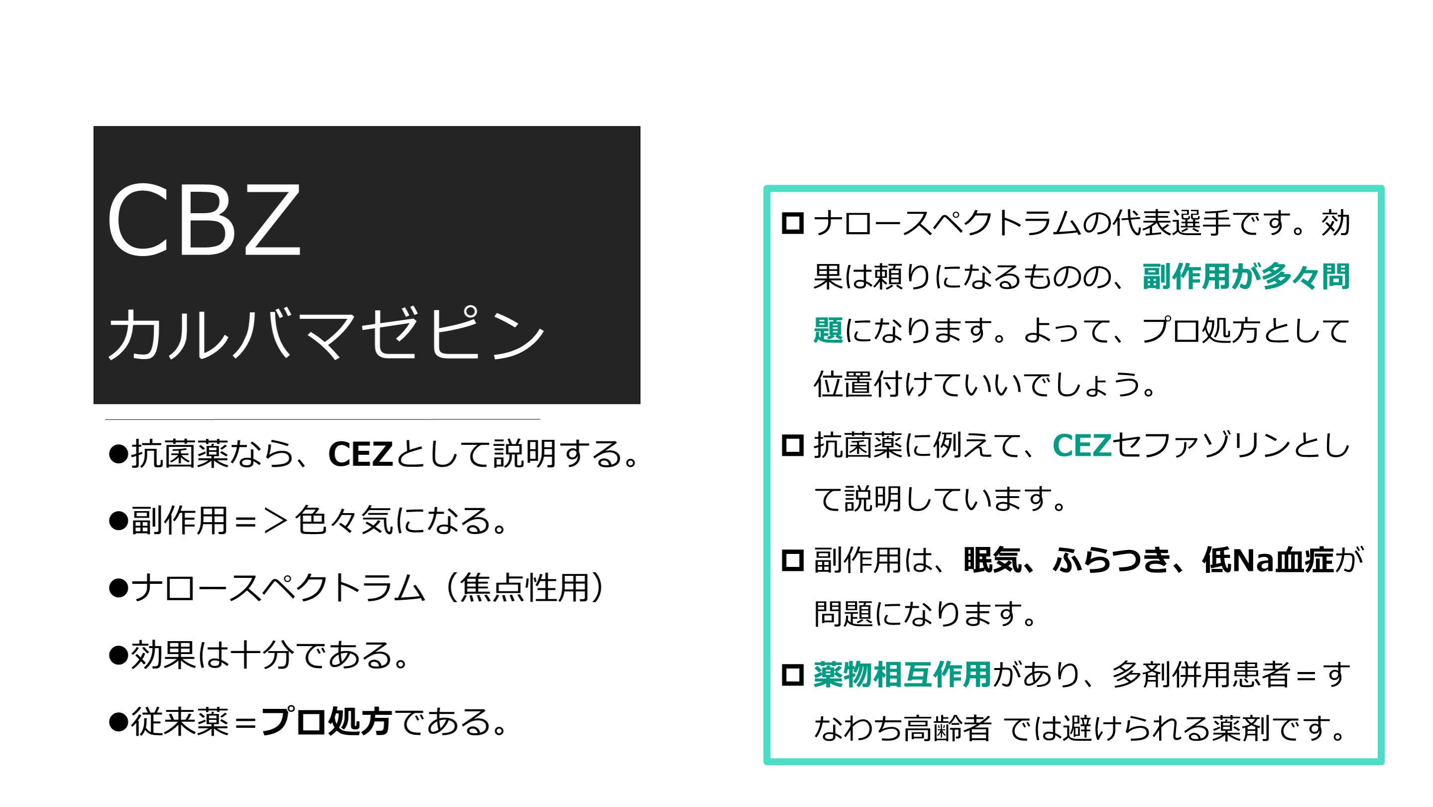 「CBZ(カルバマゼピン)はCEZ(セファゾリン)です」。