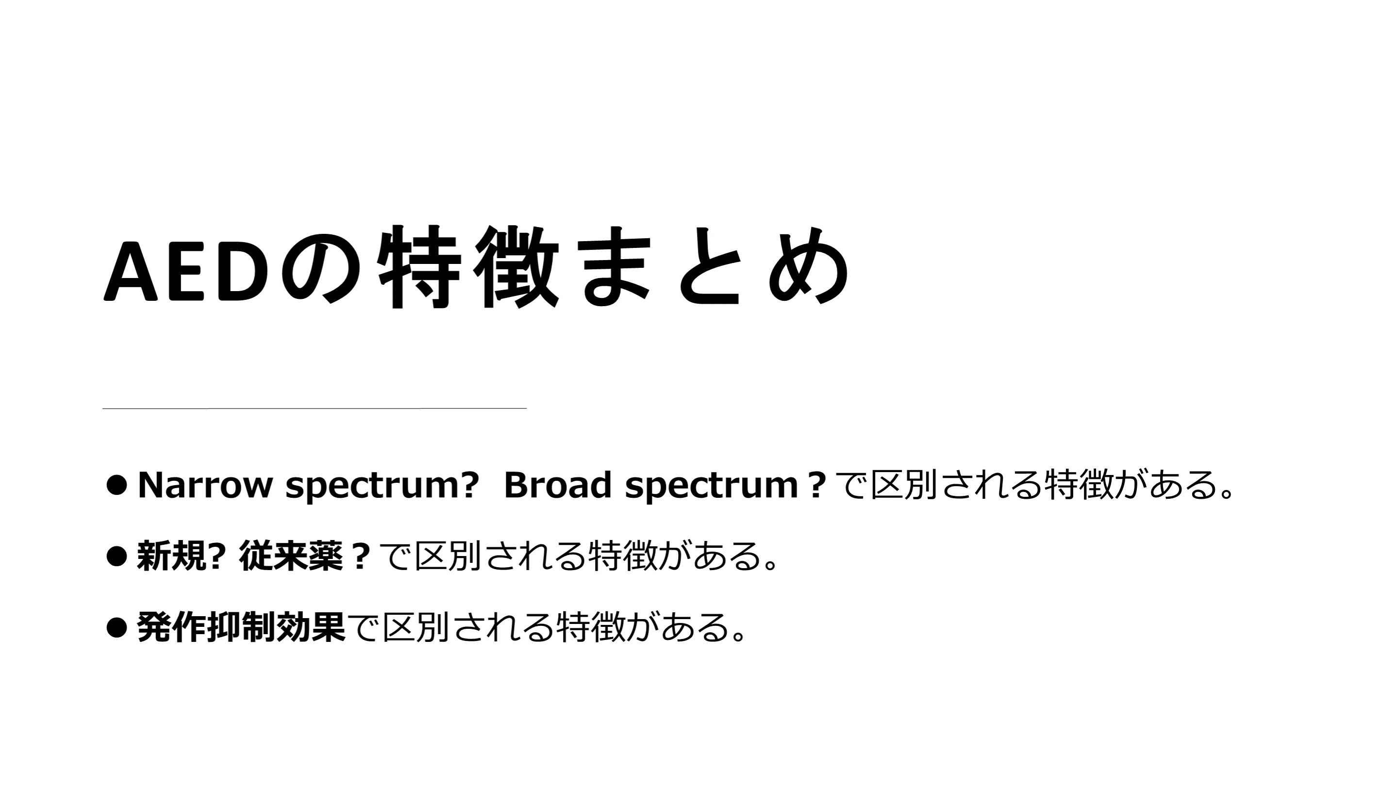 #17. AEDの特徴まとめ Narrow spectrum? Broad spectrum?で区別される特徴がある。
