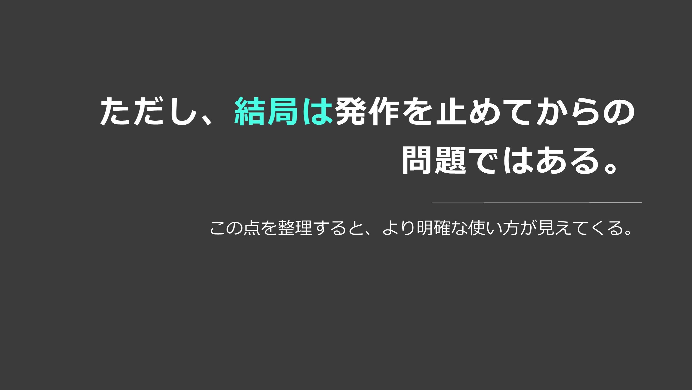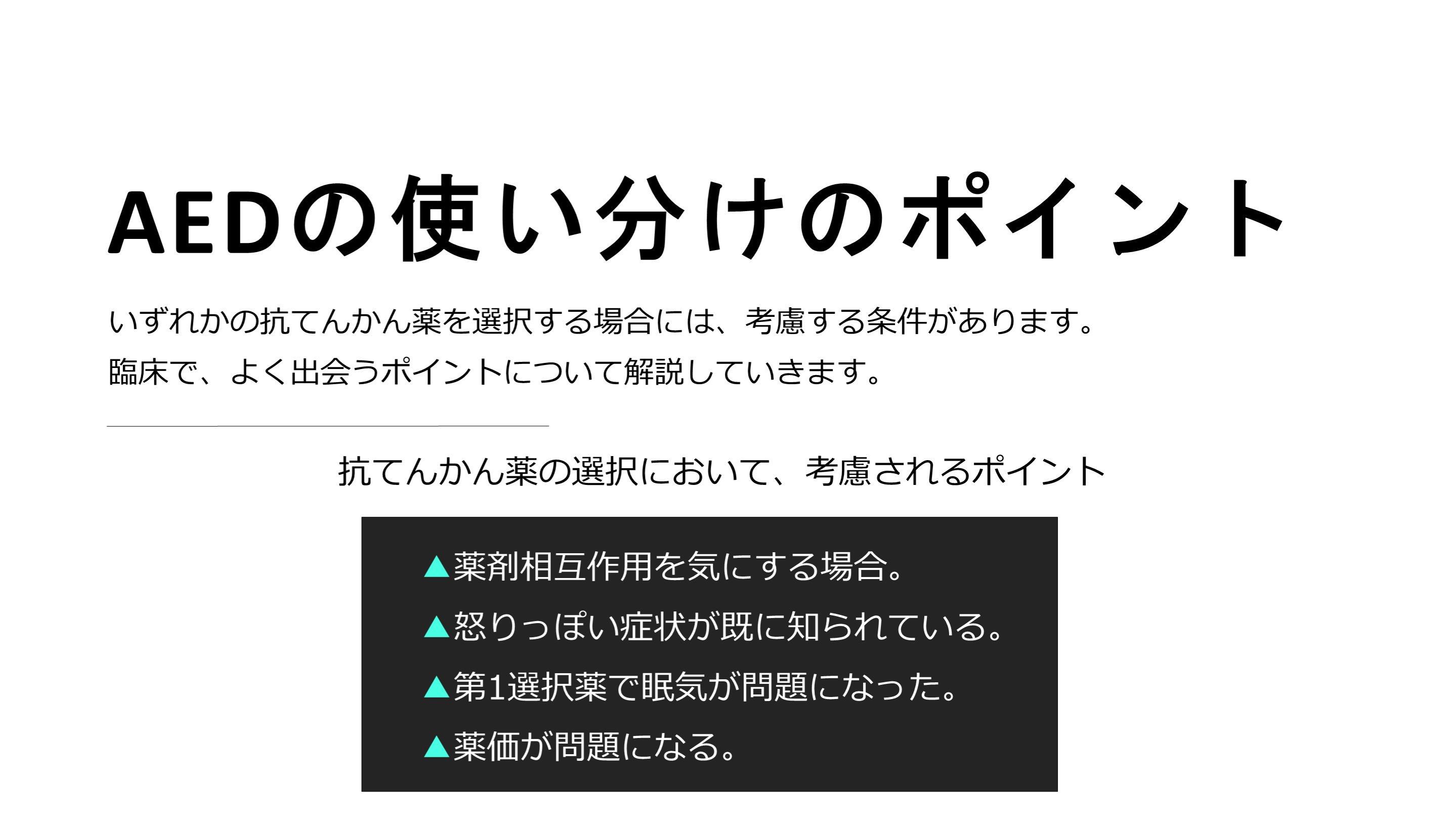 よって、眠気で他剤が使えなかった症例などで、選択肢になります。