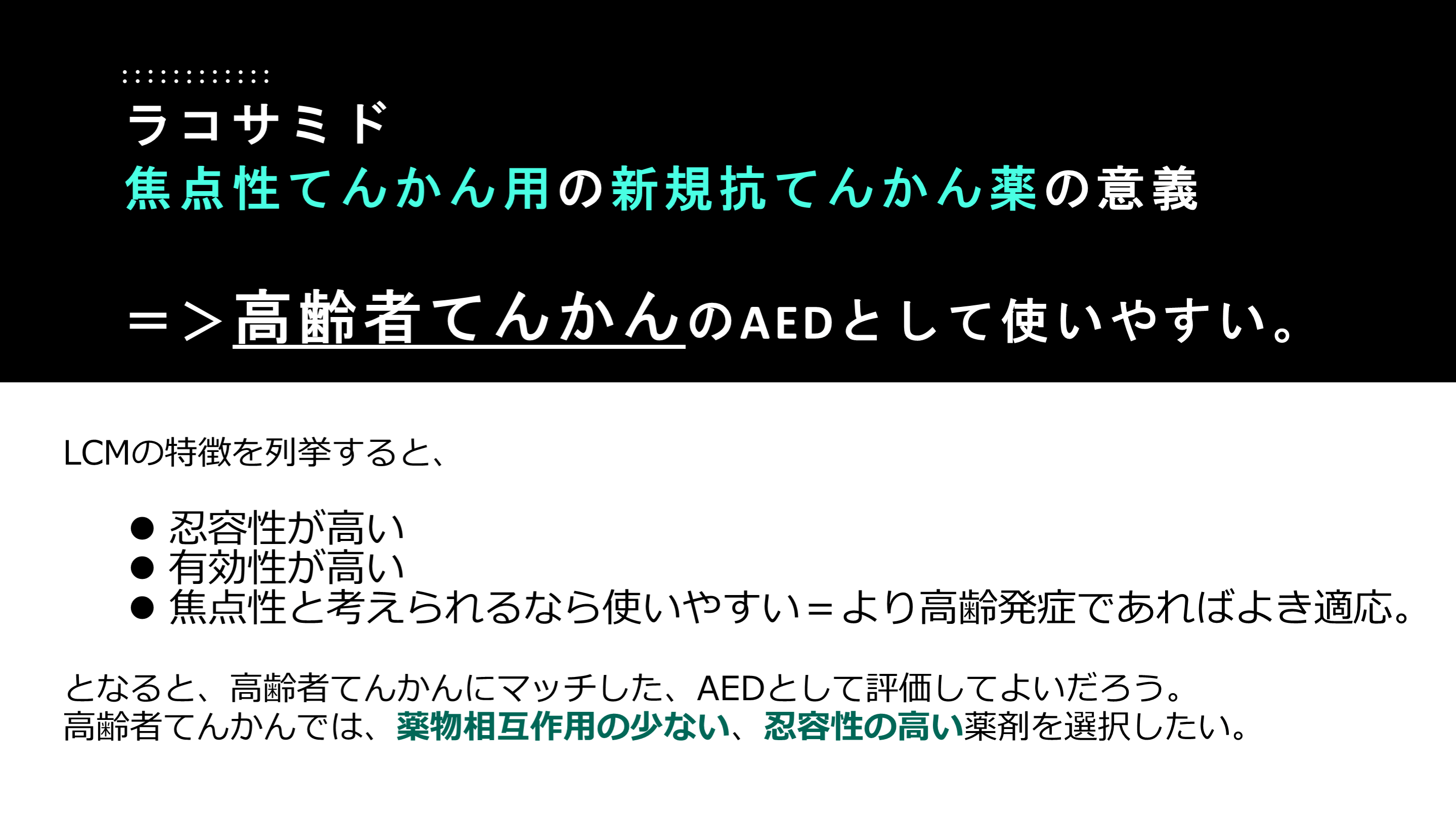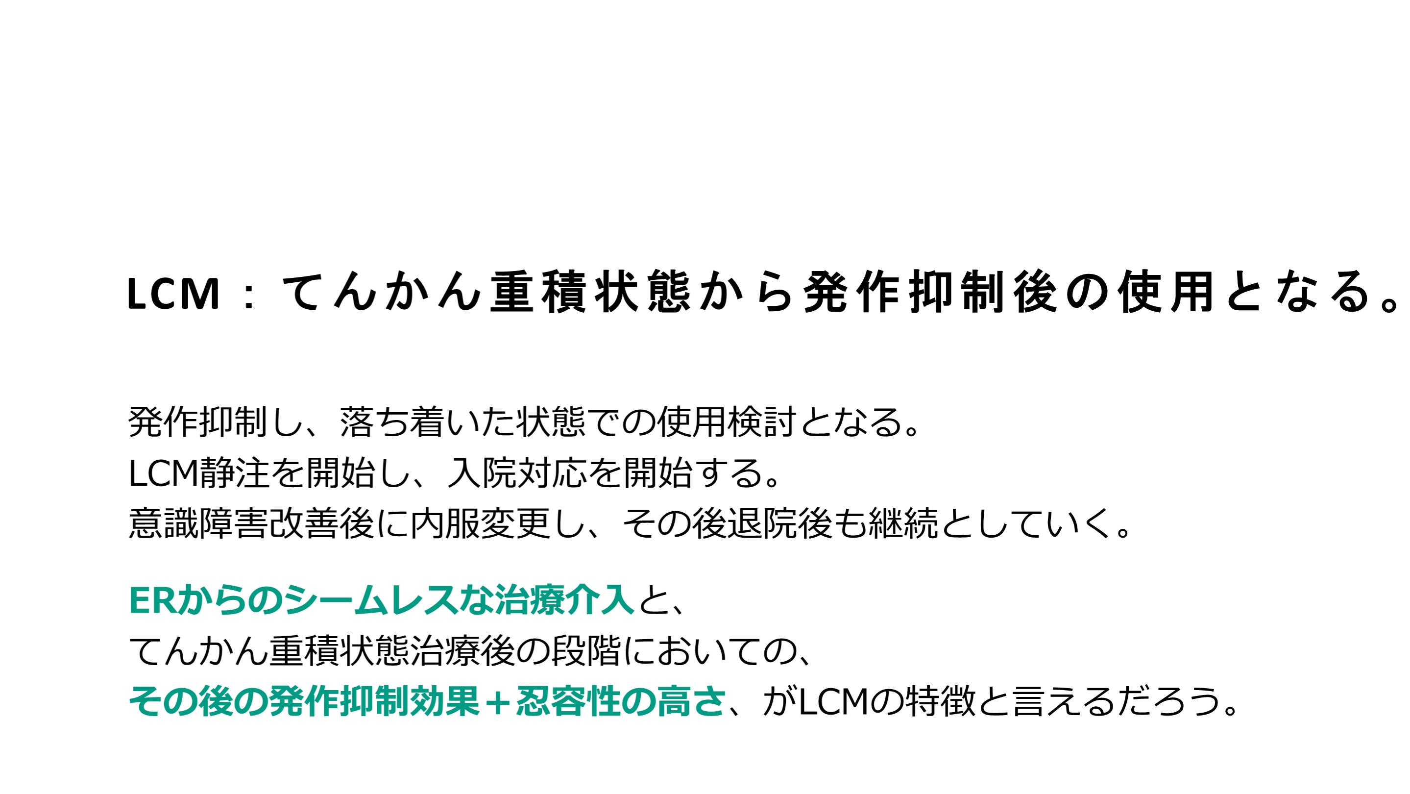 その後の発作抑制効果+忍容性の高さ、がLCMの特徴と言えるだろう。