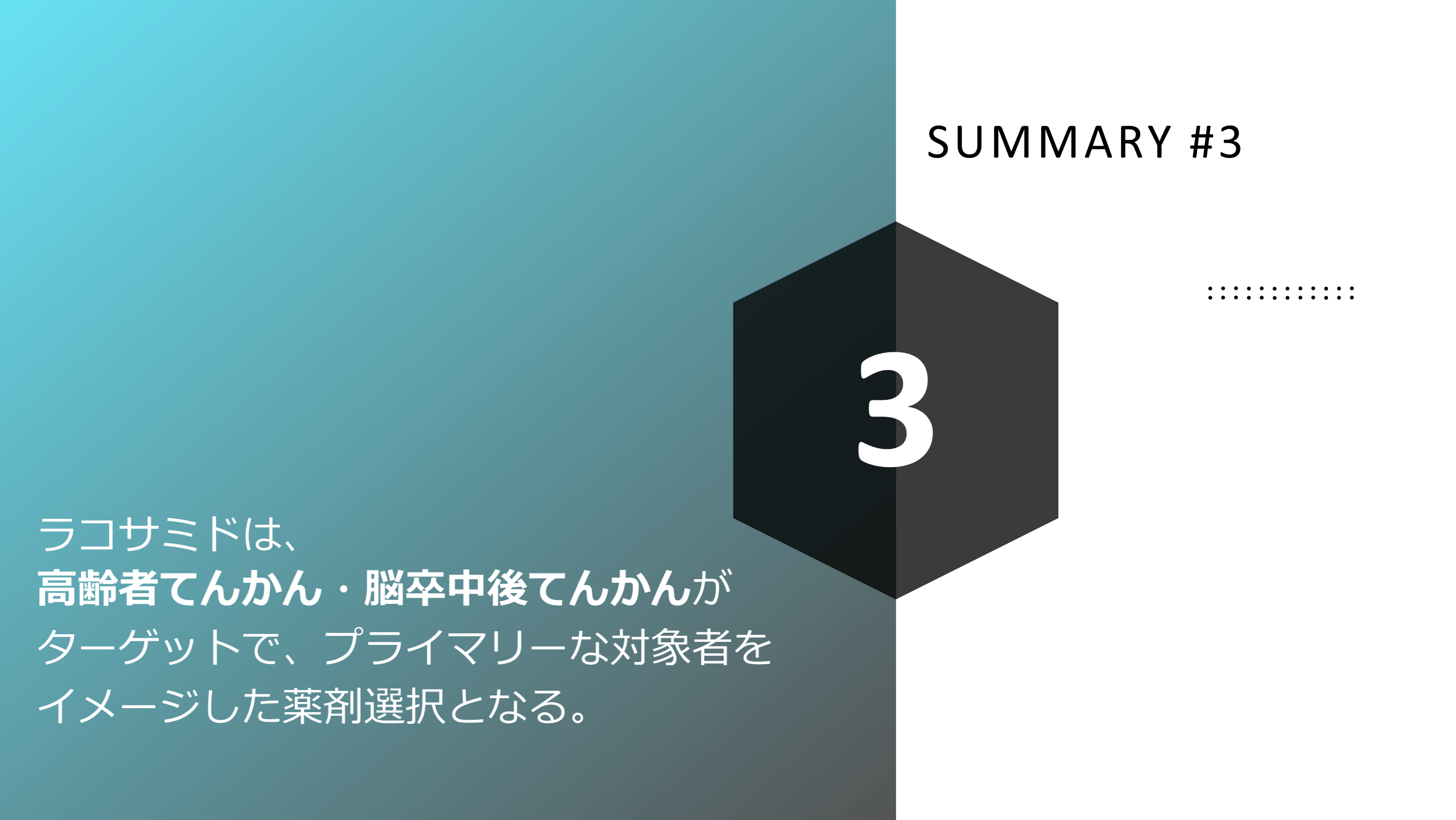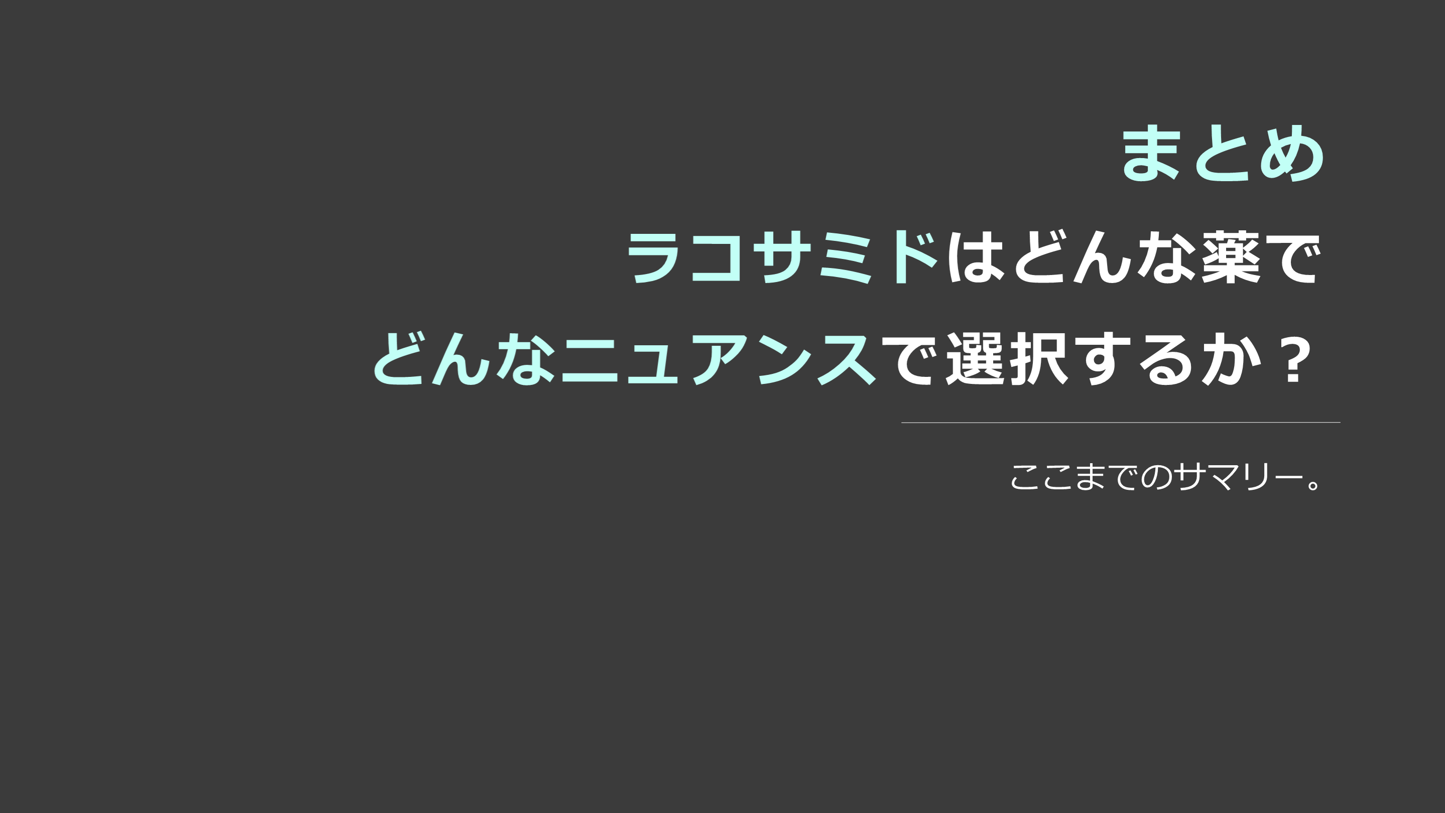 #82. SUMMARY #4 4 ラコサミドを用いた、