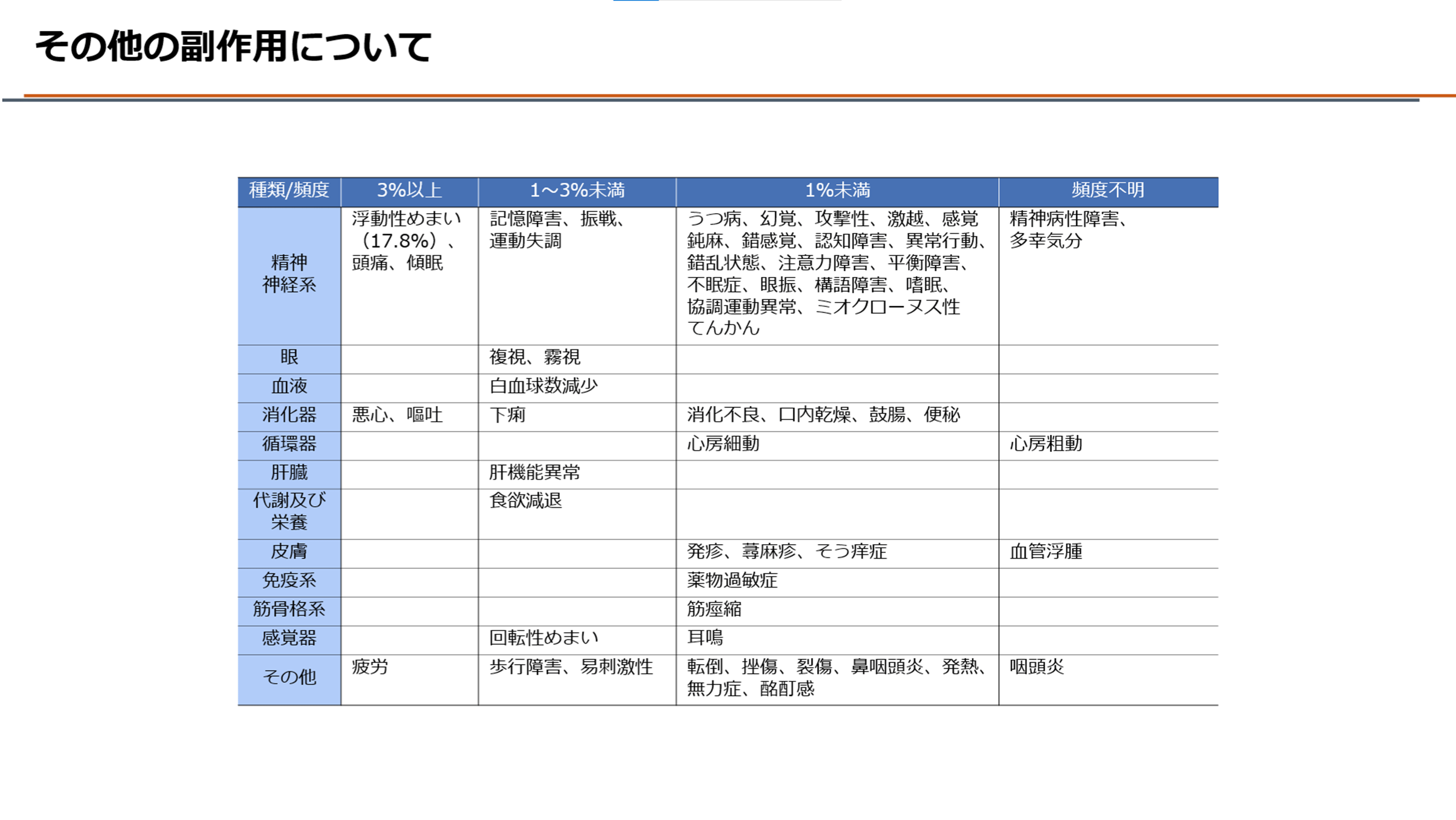 副作用は、眠気と易怒性です。これは留意しておいてください。