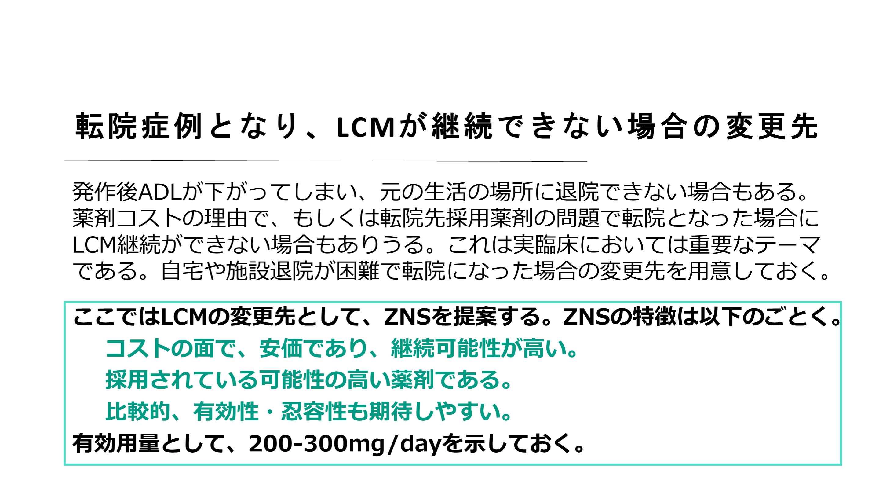#63. LCMで発作コントロールがついたのち、ZNSへの変更対応とした。