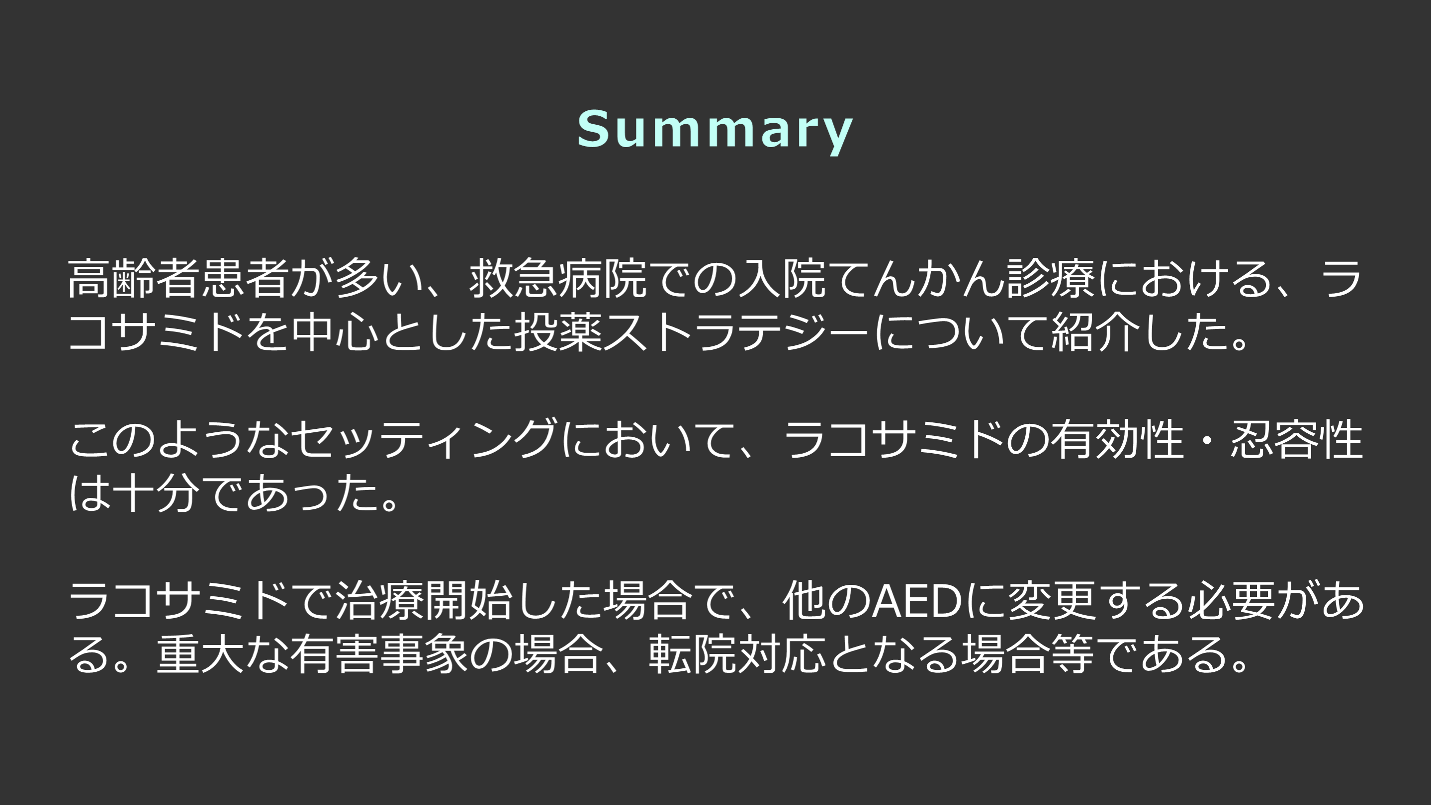 Daisuke Yamamoto 救急病院でのラコサミドの
