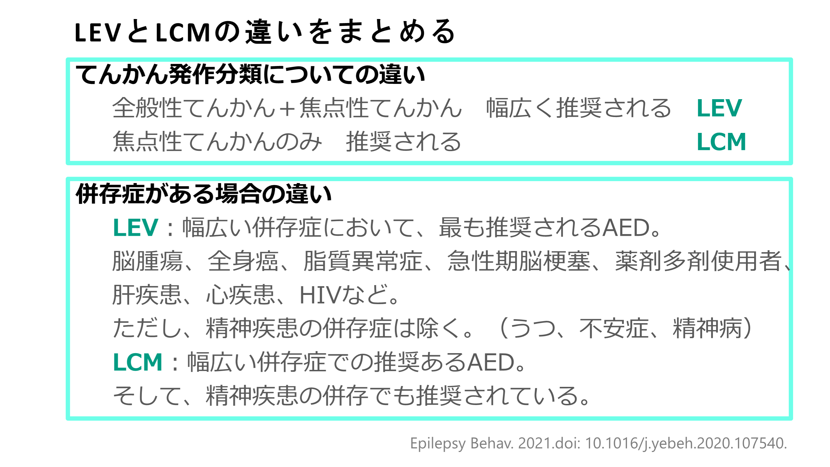そして、精神疾患の併存でも推奨されている。 Epilepsy Behav. 2021.doi: 10.1016/j.yebeh.2020.107540.