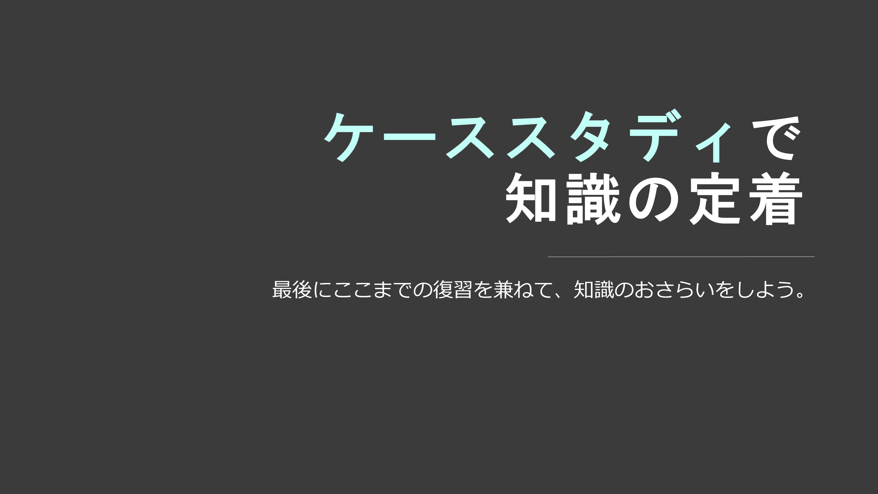 知識の定着 最後にここまでの復習を兼ねて、知識のおさらいをしよう。