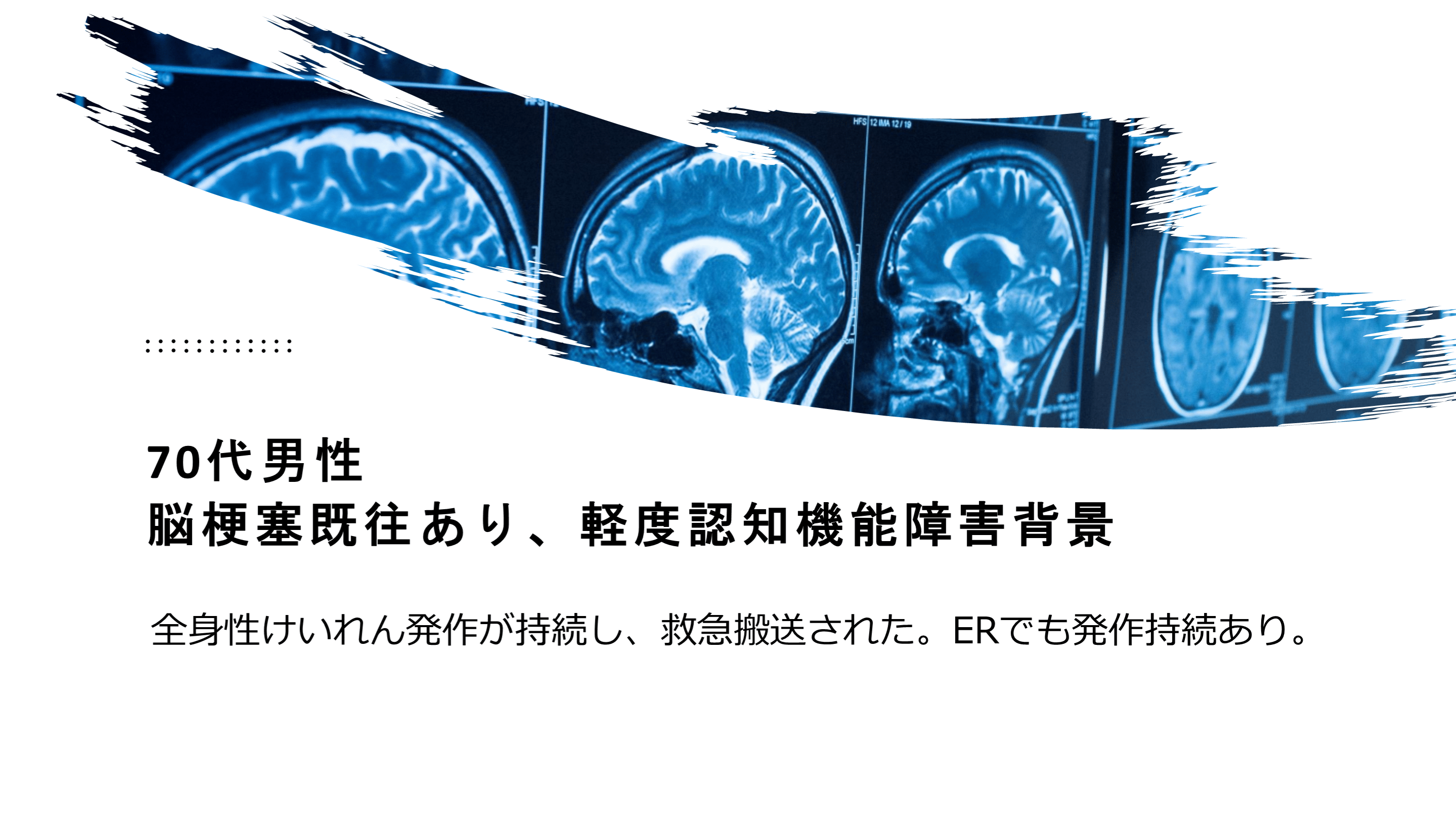 脳梗塞既往あり、軽度認知機能障害背景 全身性けいれん発作が持続し、救急搬送された。ERでも発作持続あり。