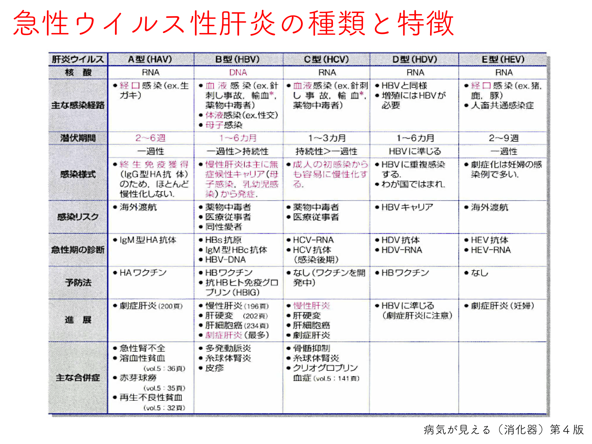 #19. 急性ウイルス性肝炎の種類と特徴 病気が見える(消化器)第4版
