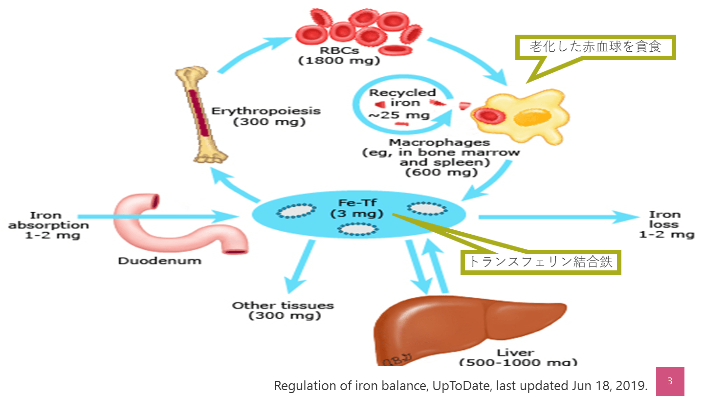 #3. 3 Regulation of iron balance, UpToDate, last updated Jun 18, 2019. トランスフェリン結合鉄 老化した赤血球を貪食