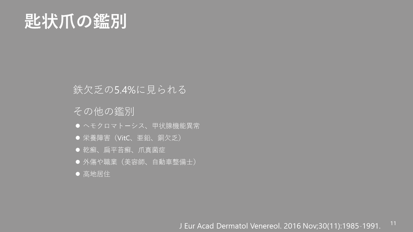 #11. 匙状爪の鑑別 11 鉄欠乏の5.4%に見られる