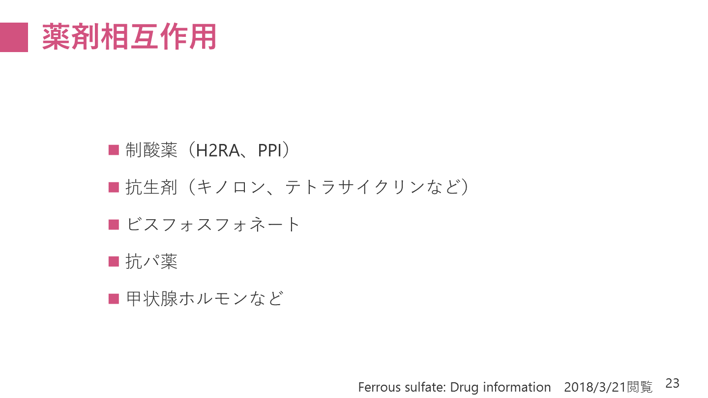 甲状腺ホルモンなど Ferrous sulfate: Drug information 2018/3/21閲覧