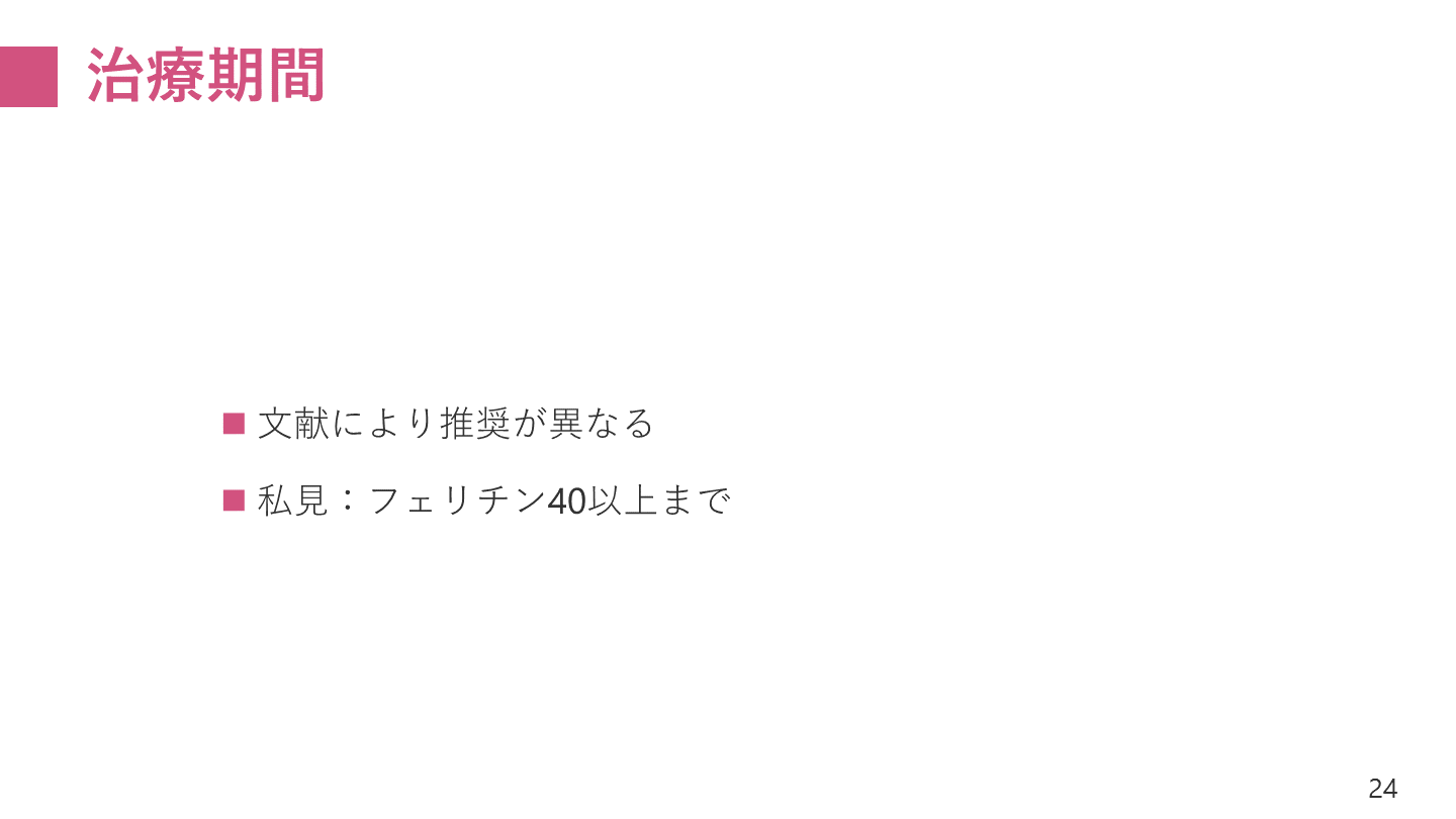 #22. 22 鉄剤を少なめに投与するには? フェロミアの半錠(=25mg/day)